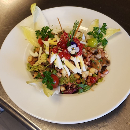 Bacon, cheese, oignons with green salad