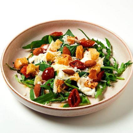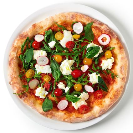 San Marzano tomatoes, fresh rocket, bufala, cherry tomatoes (plus vegetables of the day), basil, fresh oregano, oil