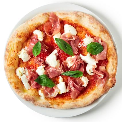 San Marzano tomatoes, fresh bufala, San Daniele 18-month ham, basil and oil