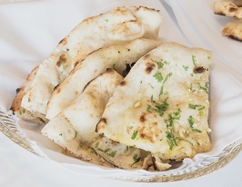 Naan bread filled with chicken, pepperoni vegetables, onions, served with green chutney