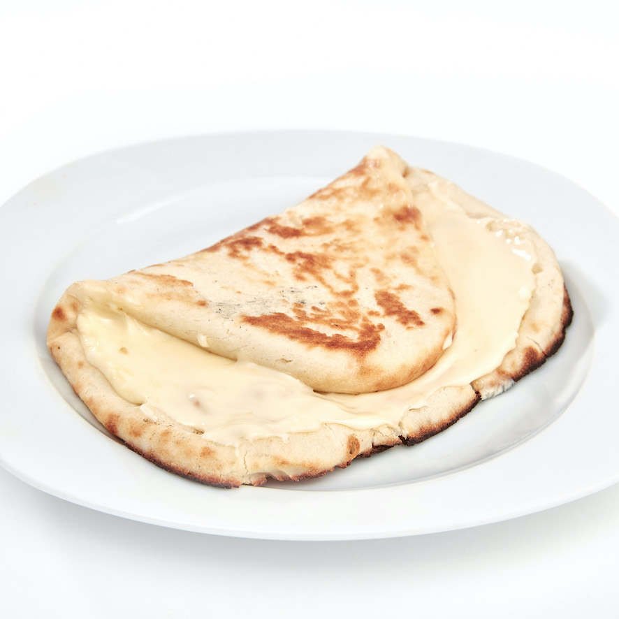 Naan bread filled with soft cheese “indian style”, pepperoni vegetables, onions, served with a green salad