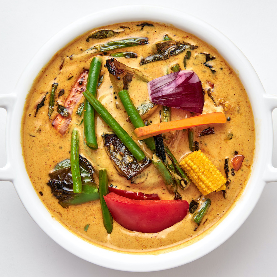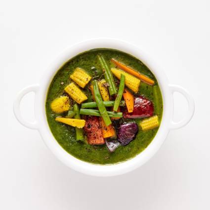 Mixed vegetables cooked in a spicy spinach sauce (palak)