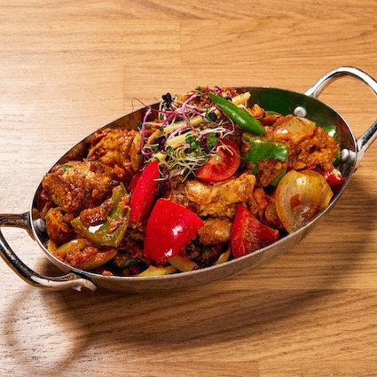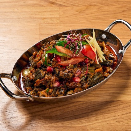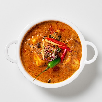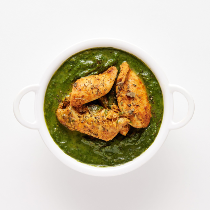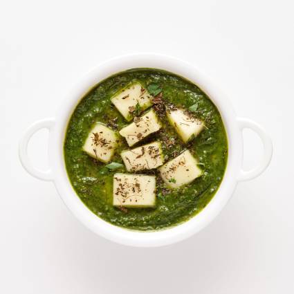 Soft cheese cooked in a spicy spinach sauce (palak)