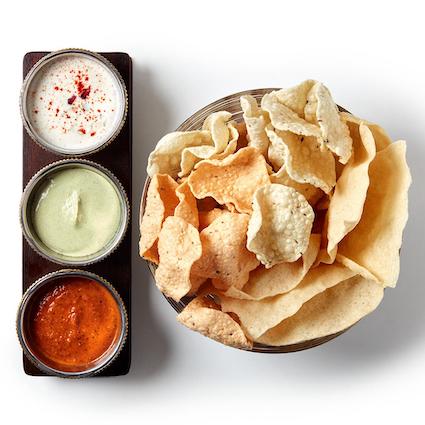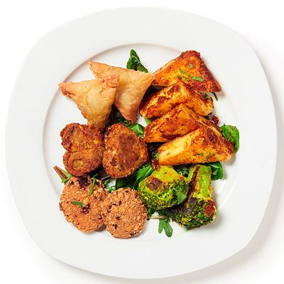 Samosa, Malai Broccoli, Dal Vada, Paneer, Coconut Corn Tikki. served with tamarind and green chutney