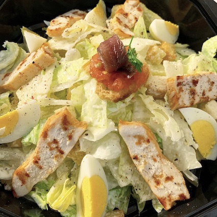 Iceberg salad, chicken breast, croutons, parmesan cheese and caesar sauce