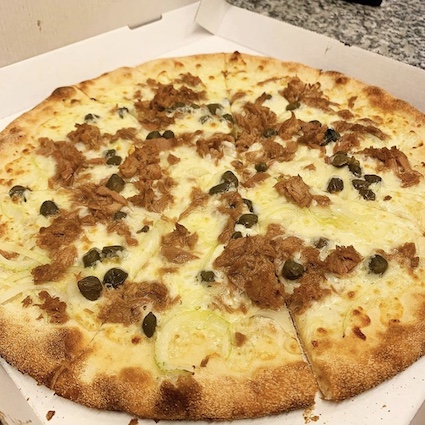 Mozzarella, tuna, onions, capers
