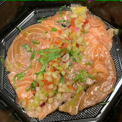 ceviche style, lime, coriander and crunchy vegetables