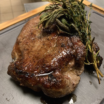 For 2 people, 800g whole rib of beef or veal depending on availability, matured on the bone