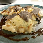 homemade, with black truffel on a bed of zucchini and sauce perigurdine