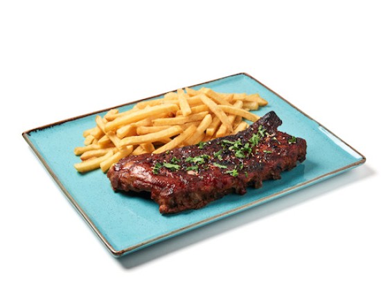 Tender spare ribs, glazed with a savory sauce, served with crispy fries.