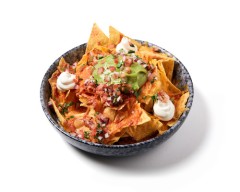 Crispy tortilla chips topped with melted cheese, jalapeños, salsa, sour cream and guacamole.